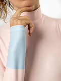 This one-piece playsuit is perfect for any workout, featuring a fitted design in pastel blue and pink shades, 50+ SPF, fast-drying, and moisture-wicking fabric for maximum comfort. Enjoy the sculpting design to help you look and feel your best