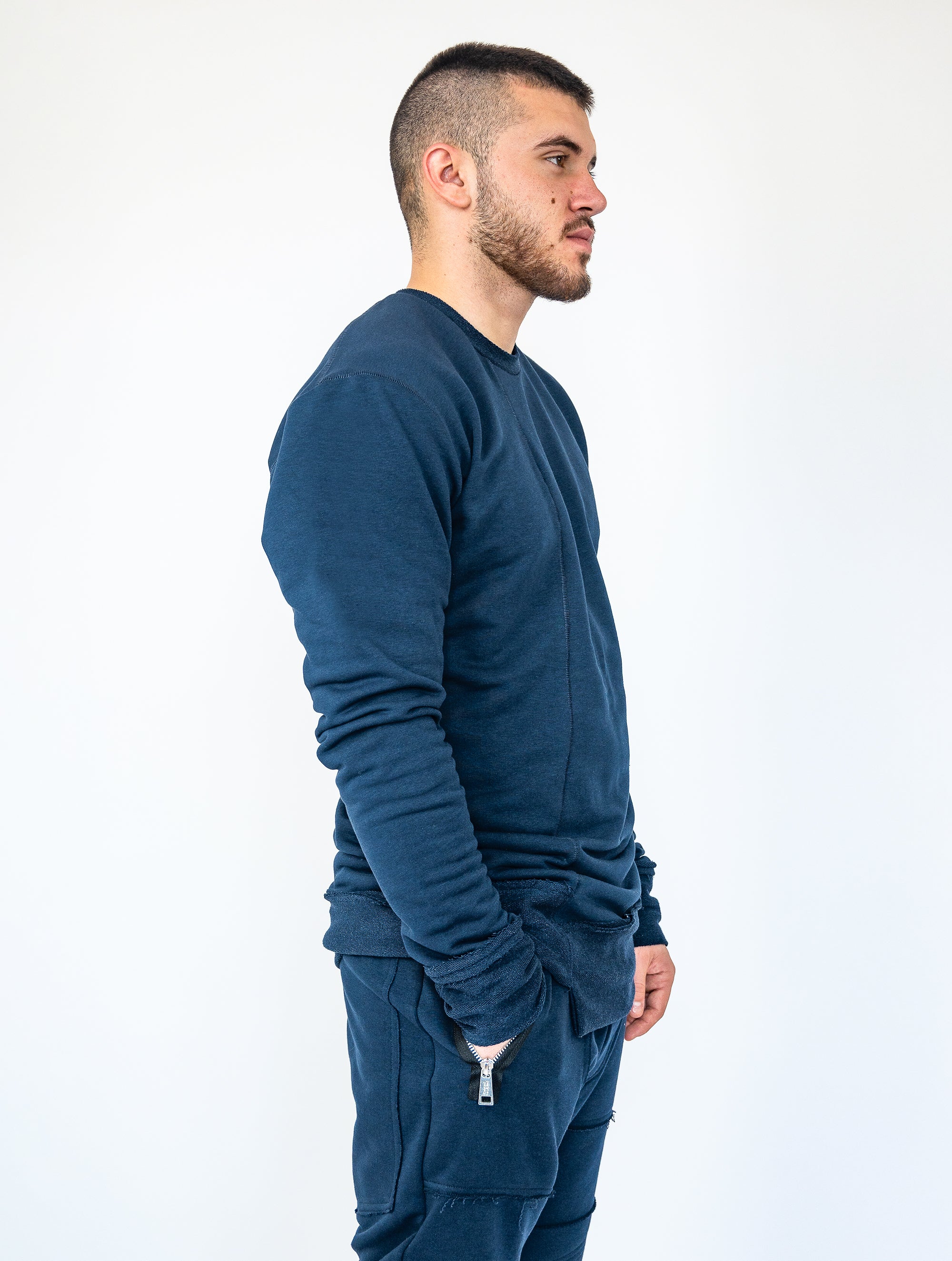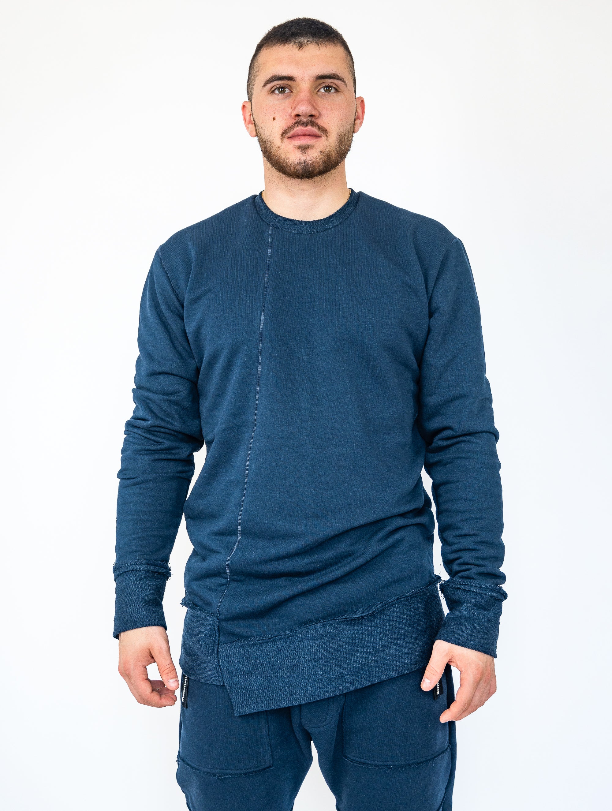 This Aspen navy blue blouse is crafted with the finest quality cotton and reverse seams, offering a modern look with an asymmetric cut and a fitted silhouette. It is an ideal wardrobe addition for the style-conscious man.