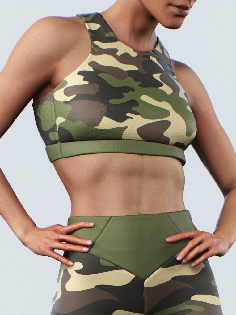 Forest Camo is a sports bra for those who love woody and green colors and outdoor workouts. If you like this pattern, make sure you check out our Camo Forest Leggings!