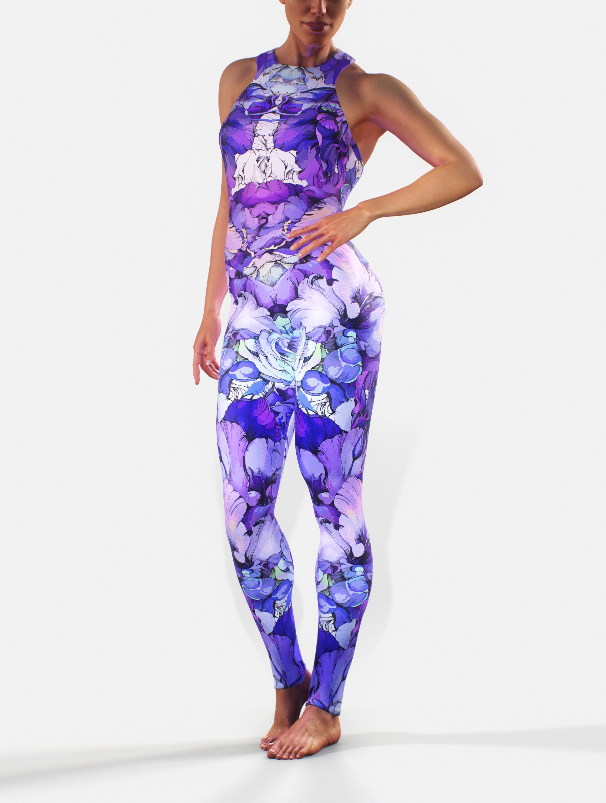 Open back peony printed bodysuit with shaping cut from a unique sculpting fabric that adds extra support to your areas that most need it. We LOVE curves! The garment emphasizes a push-up effect that lifts and molds your body via a strategically-designed back upper part and lines with a V shape on the front and back. A catsuit to die for!