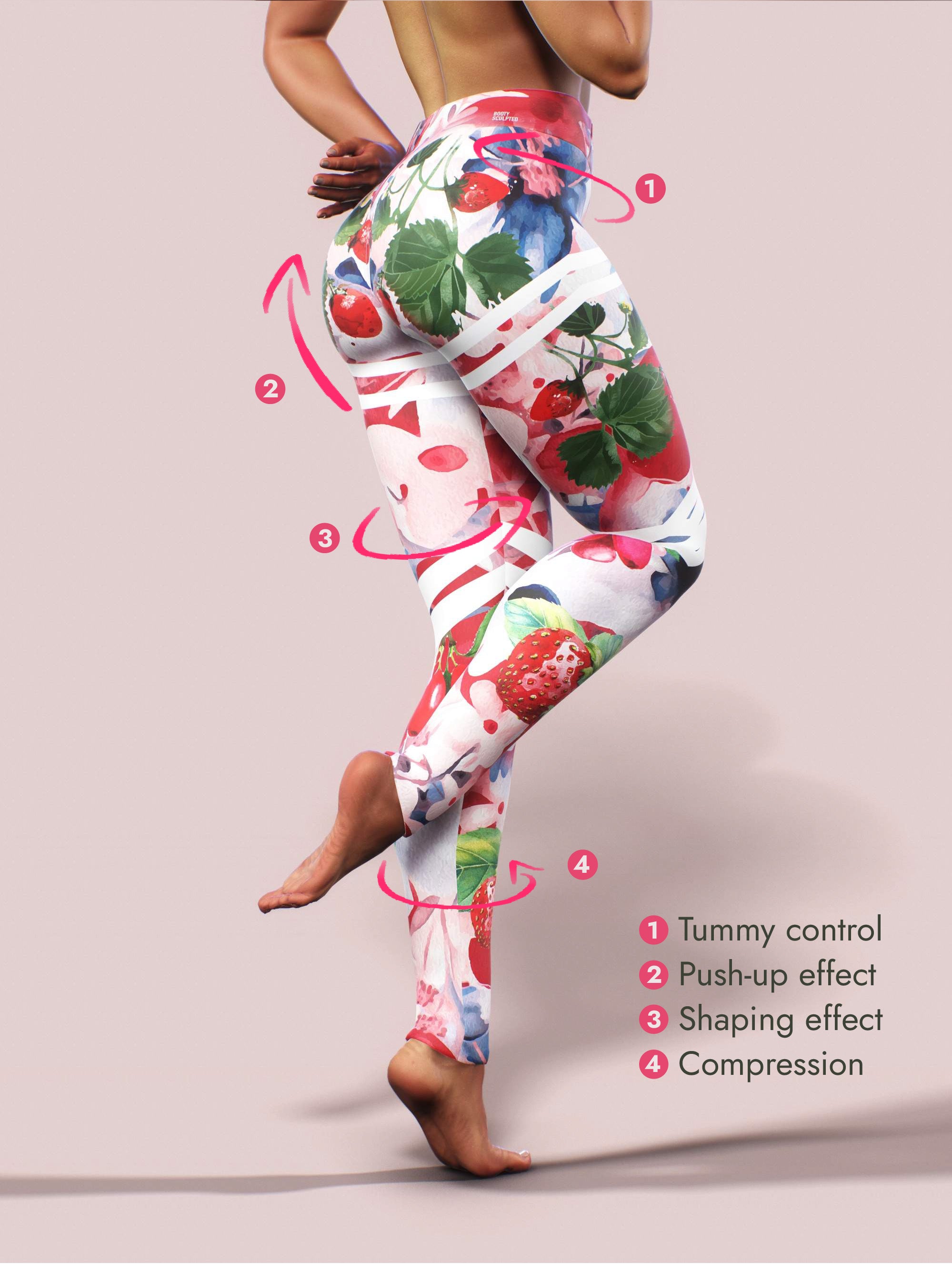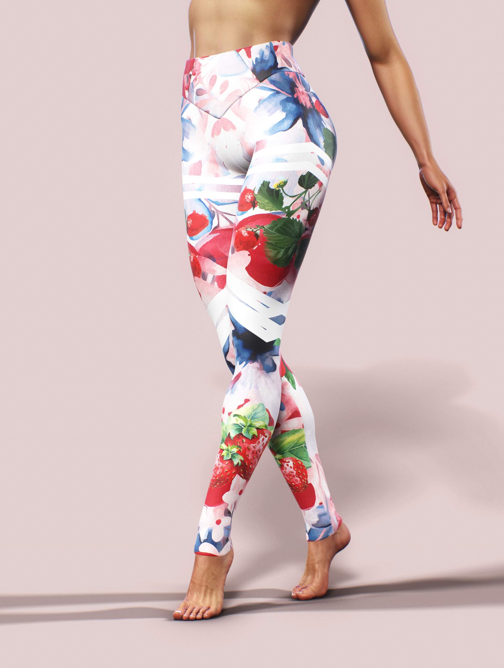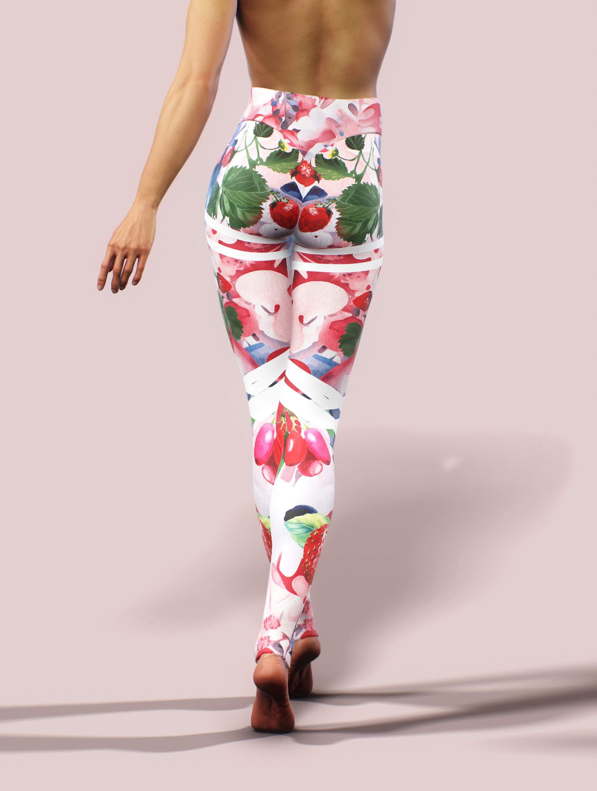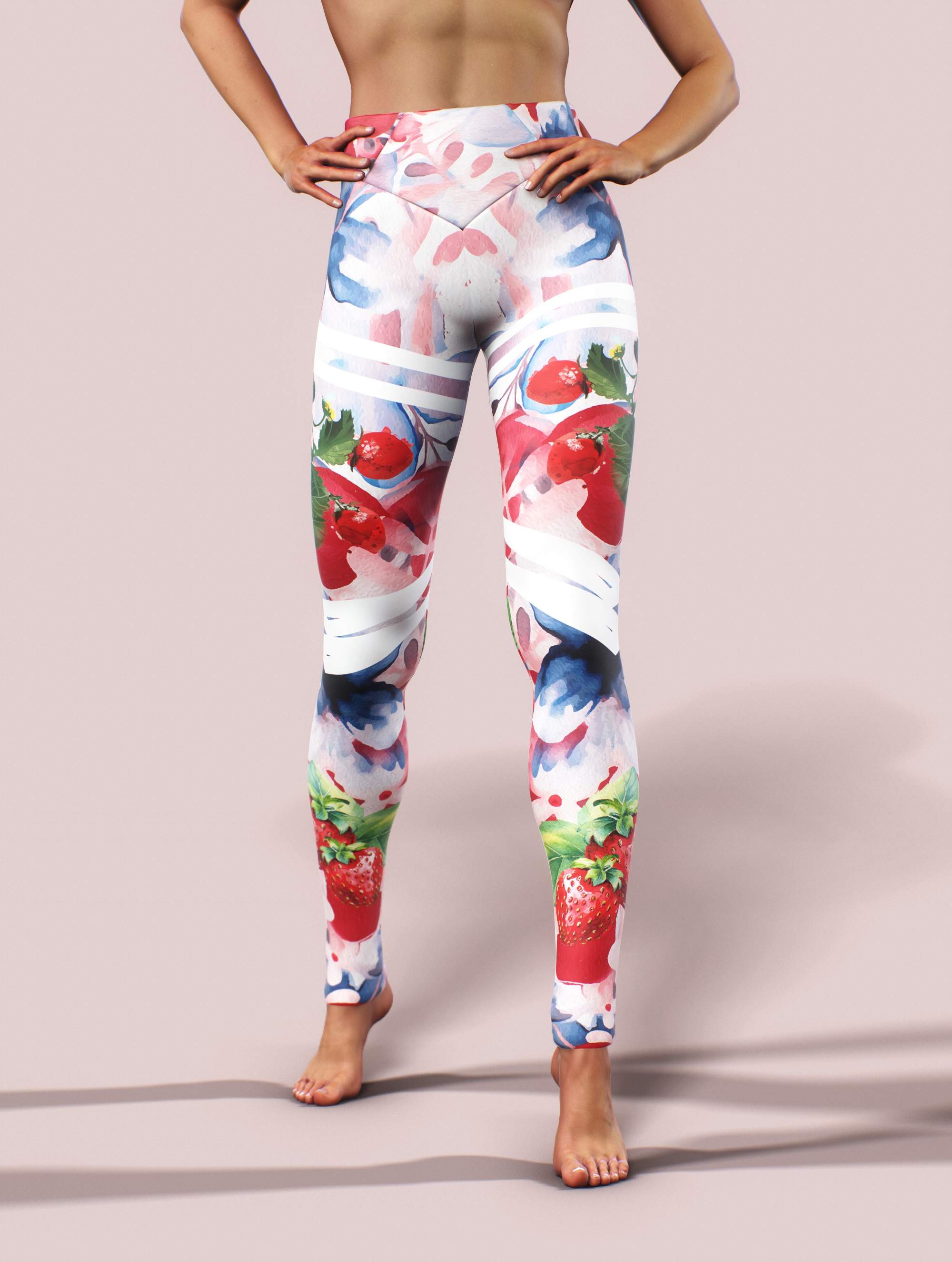 Those Berry Cream Blend High Waisted leggings look absolutely delicious, aren't they? Their pattern is printed from hand-drawn aquarelle flowers and berries mixed in a bright aesthetic explosion of colours.