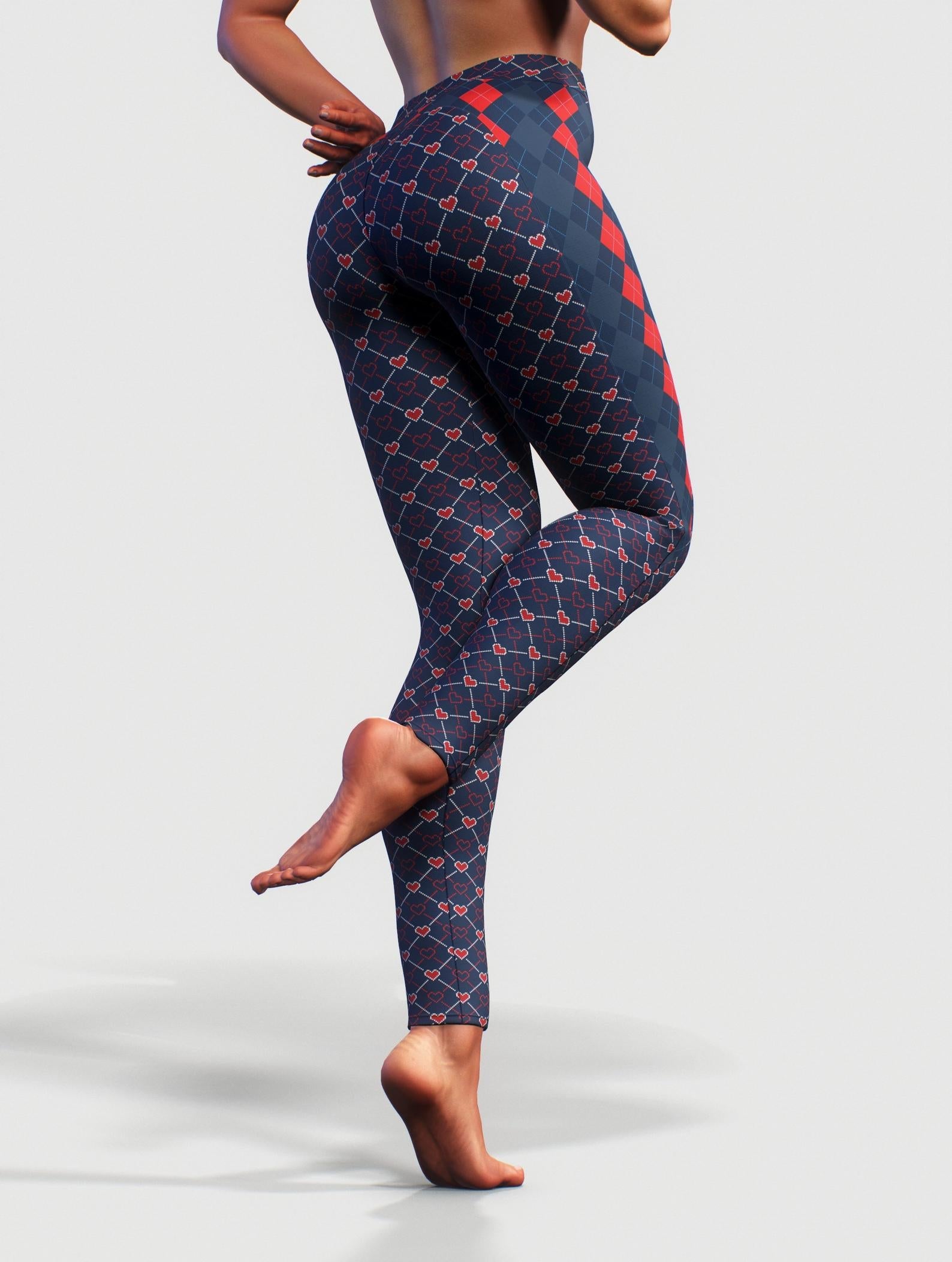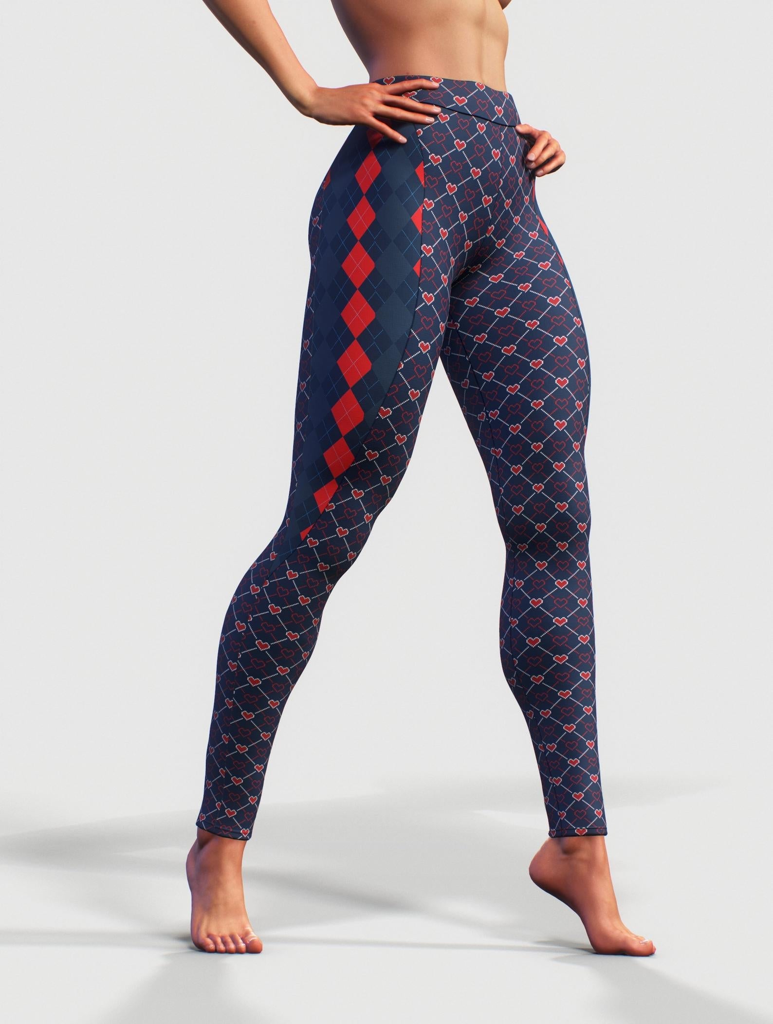 Blue Red Argyle Leggings