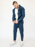 This navy blue hoodie is the perfect addition to the wardrobe of any man who demands his unique look. Featuring solid aluminum zippers, detailed outer seams, and big pockets, this hoodie offers a futuristic look with a relaxed fit